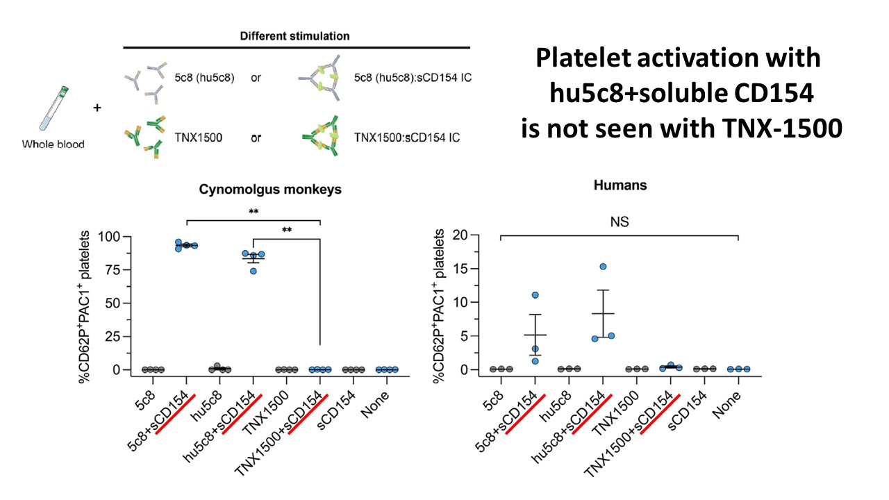 Platelet activation with hu5c8+soluble CD154 is not seen with TNX - 1500