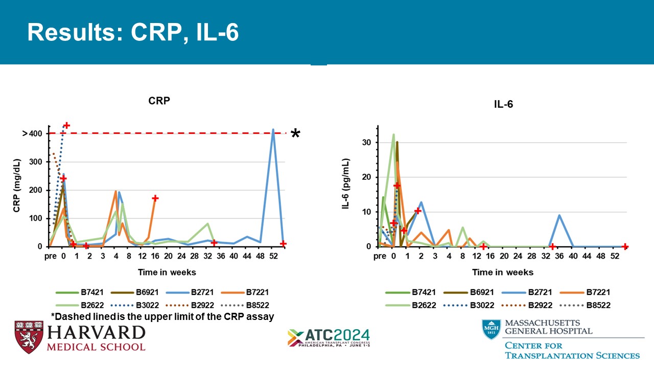 Results: CRP, IL - 6 *Dashed lined is the upper limit of the CRP assay *