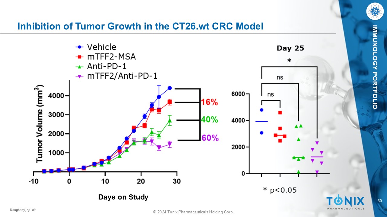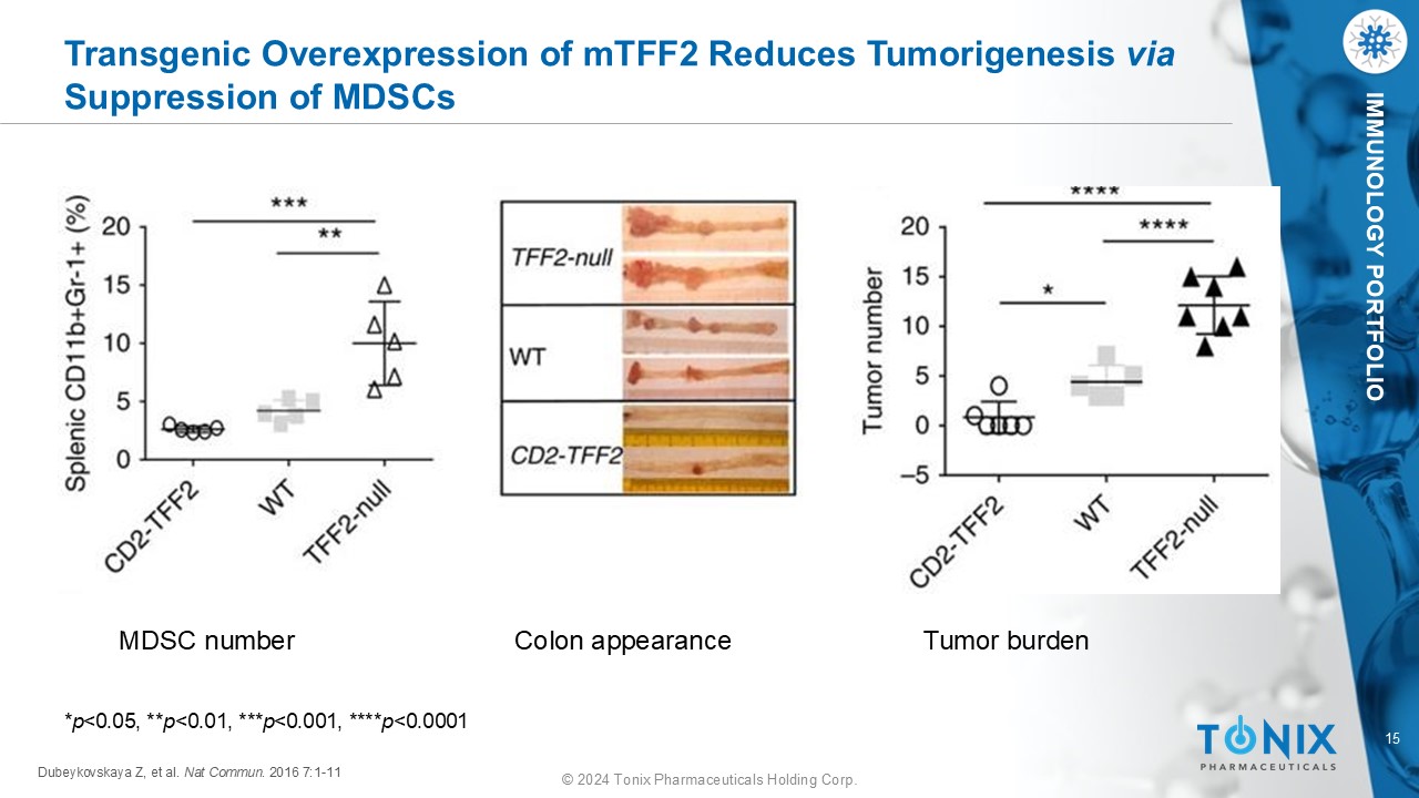 © 2023 Tonix Pharmaceuticals Holding Corp. © 2024 Tonix Pharmaceuticals Holding Corp. Chemoprevention Studies Murine AOM/DSS Model, mTFF2 - MSA