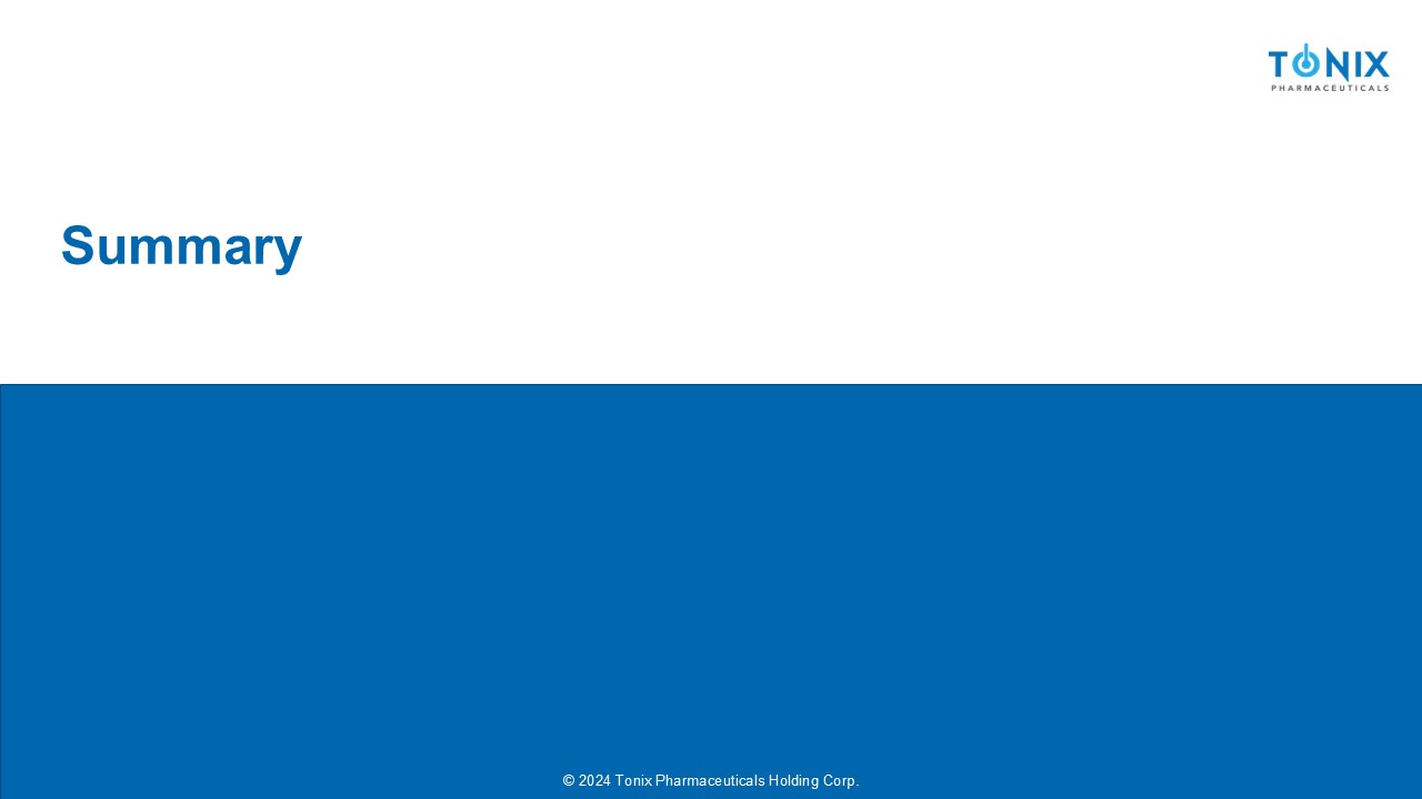 © 2023 Tonix Pharmaceuticals Holding Corp. © 2024 Tonix Pharmaceuticals Holding Corp. Summary