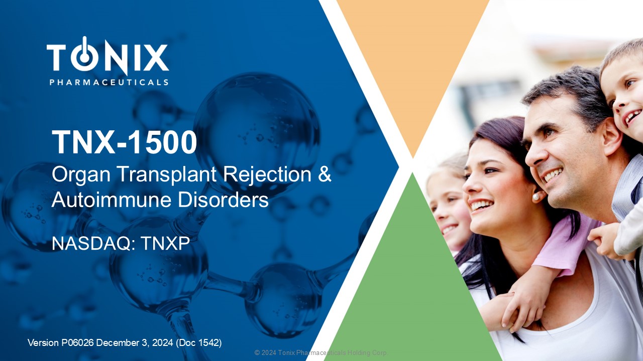 © 2024 Tonix Pharmaceuticals Holding Corp. TNX - 1500 Organ Transplant Rejection & Autoimmune Disorders NASDAQ: TNXP Version P06026 December 3, 2024 (Doc 1542)