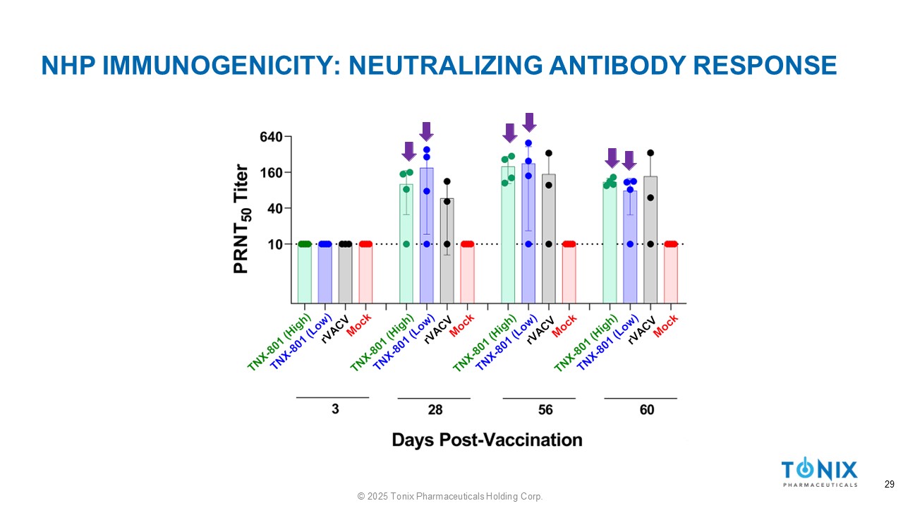 NHP IMMUNOGENICITY: NEUTRALIZING ANTIBODY RESPONSE 29 © 2025 Tonix Pharmaceuticals Holding Corp.