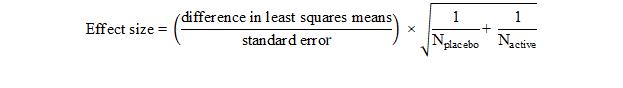 Effect sizes for the primary and secondary endpoints, except for PGIC, were calculated as:
