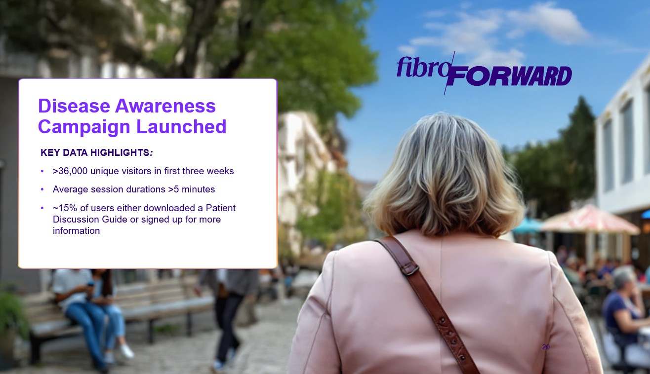 20 KEY DATA HIGHLIGHTS : • >36,000 unique visitors in first three weeks • Average session durations >5 minutes • ~15% of users either downloaded a Patient Discussion Guide or signed up for more information Disease Awareness Campaign Launched