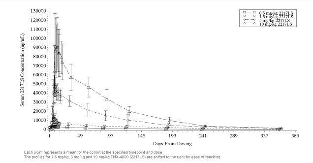 The charts below set forth certain data from the Phase 1 trial for TNX-4800.