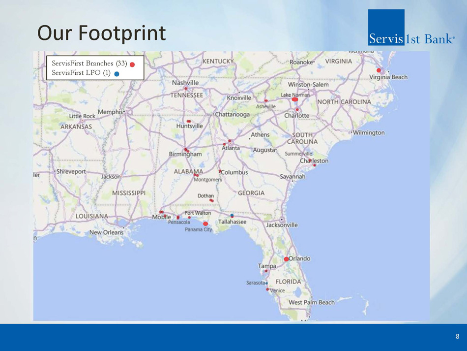 Our Footprint 8 ServisFirst Branches (3 3 ) ServisFirst LPO (1)