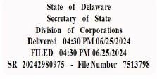 You may verify this certificate online at corp.delaware.gov/authver.shtml