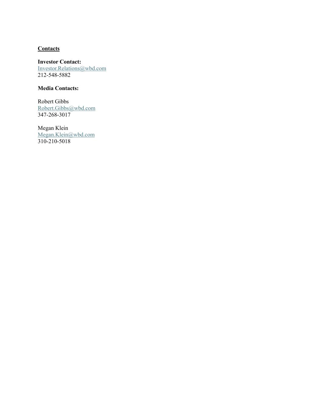 Contacts Investor Contact: Investor.Relations@wbd.com 212-548-5882 Media Contacts: Robert Gibbs Robert.Gibbs@wbd.com 347-268-3017 Megan Klein Megan.Klein@wbd.com 310-210-5018