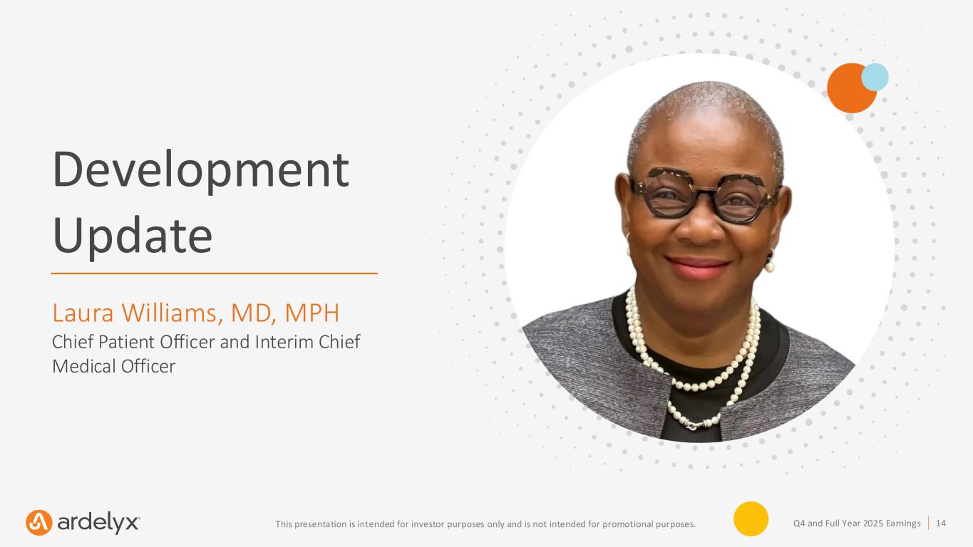 14Q4 and Full Year 2025 EarningsThis presentation is intended for investor purposes only and is not intended for promotional purposes. Development Update Laura Williams, MD, MPH Chief Patient Officer and Interim Chief Medical Officer