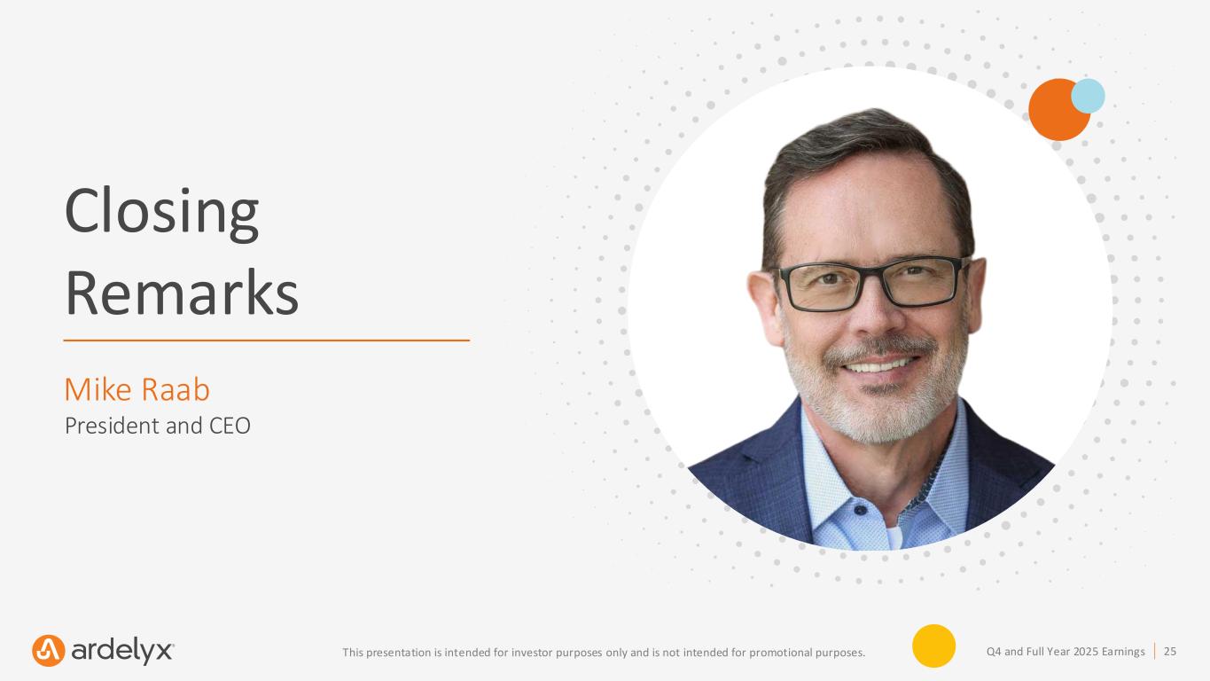 25Q4 and Full Year 2025 EarningsThis presentation is intended for investor purposes only and is not intended for promotional purposes. Closing Remarks Mike Raab President and CEO