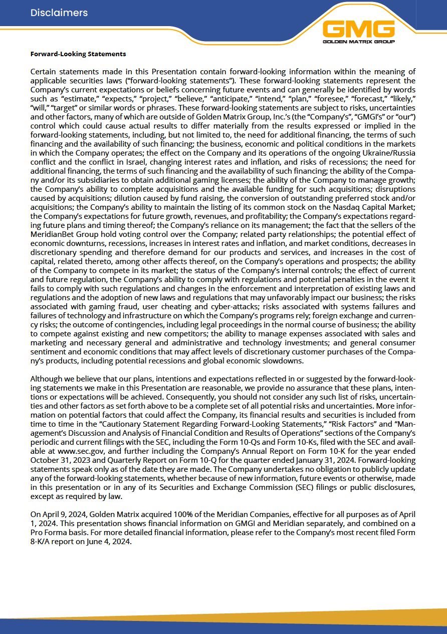 EX-99.2 3 gmgi_ex992.htm PRO FORMA PRESENTATION gmgi_ex992.htm
