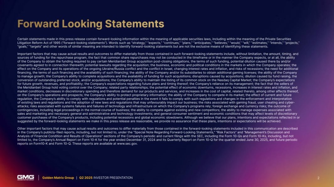 EX-99.2 3 gmgi_ex992.htm PRESENTATIO gmgi_ex992.htm