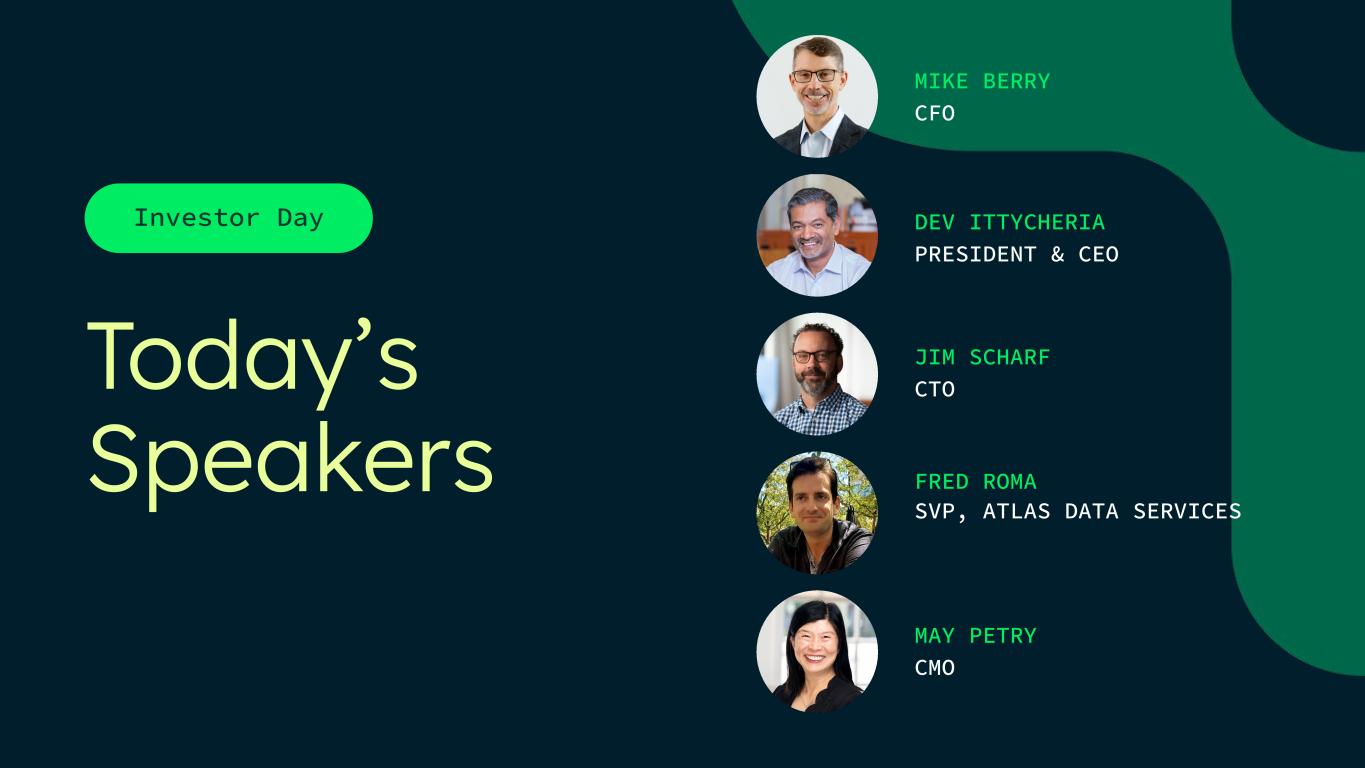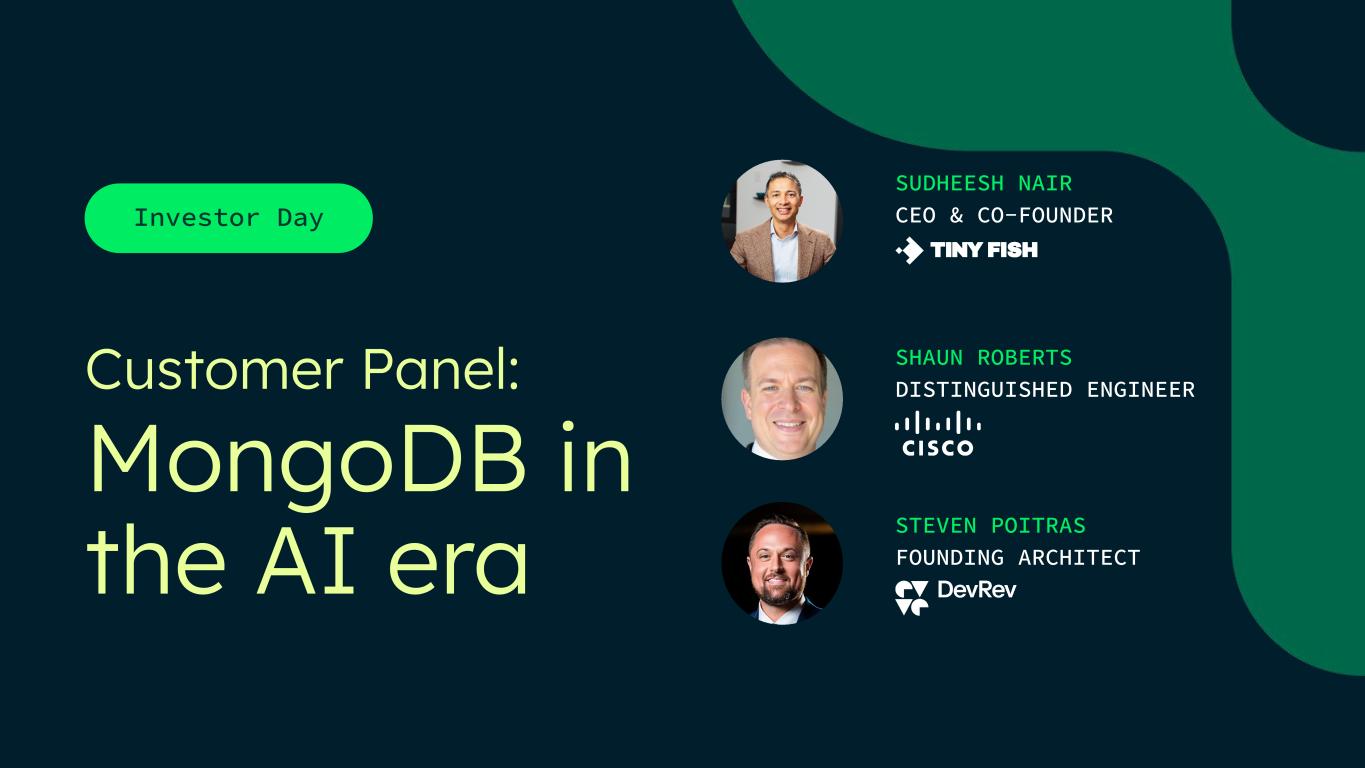 Investor Day SUDHEESH NAIR CEO & CO-FOUNDER SHAUN ROBERTS DISTINGUISHED ENGINEER STEVEN POITRAS FOUNDING ARCHITECT Customer Panel: MongoDB in the AI era