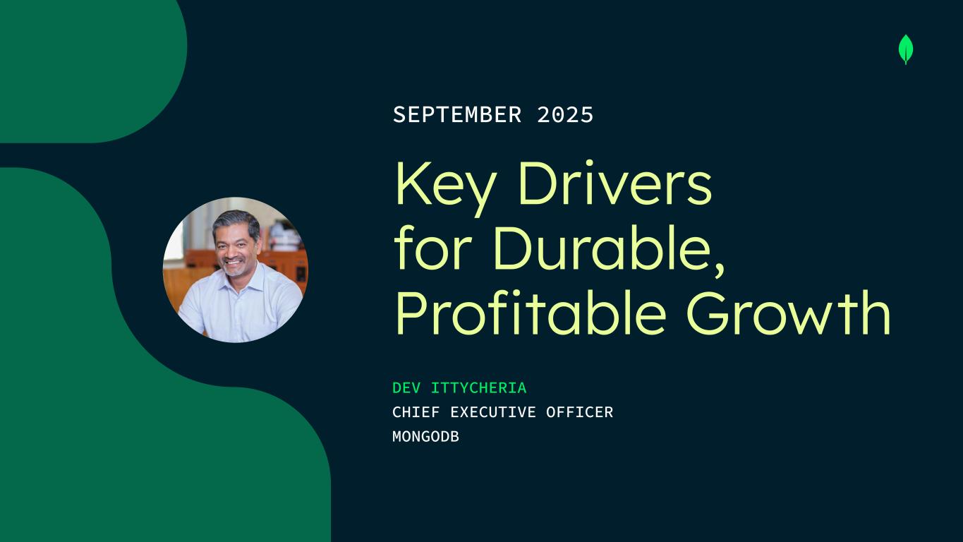 SEPTEMBER 2025 Key Drivers for Durable, Profitable Growth DEV ITTYCHERIA CHIEF EXECUTIVE OFFICER MONGODB