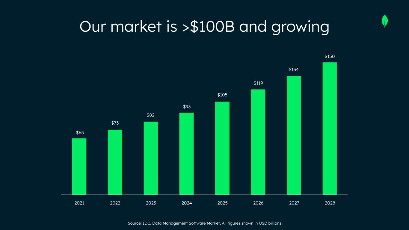 Source: IDC, Data Management Software Market, All figures shown in USD billions 2021 2022 2023 2024 2025 2026 2027 2028 $150 $134 $119 $105 $93 $82 $73 $65 Our market is >$100B and growing