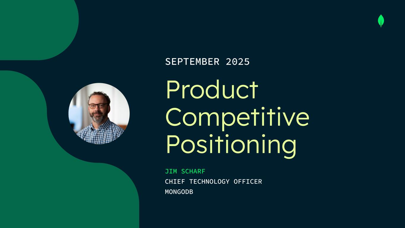 Product Competitive Positioning SEPTEMBER 2025 JIM SCHARF CHIEF TECHNOLOGY OFFICER MONGODB