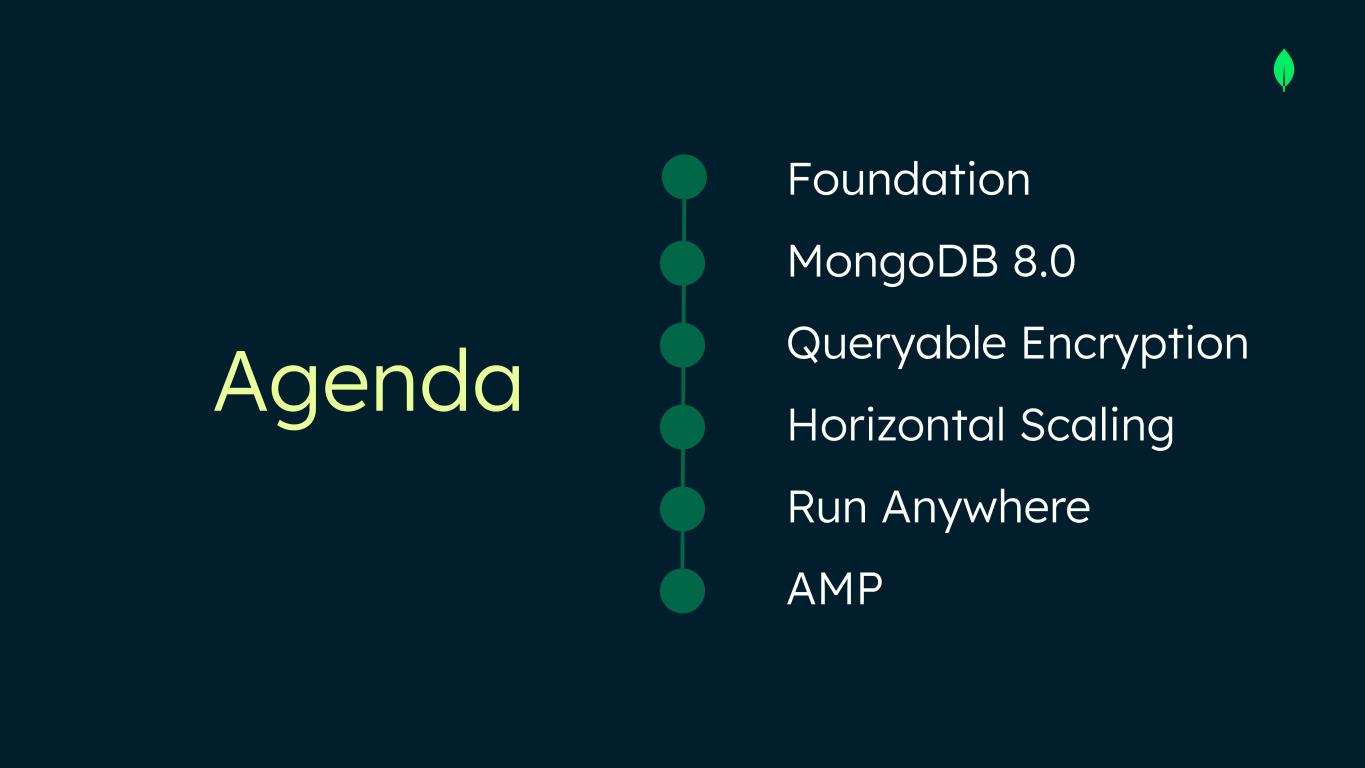 Agenda Foundation MongoDB 8.0 Queryable Encryption Horizontal Scaling Run Anywhere AMP