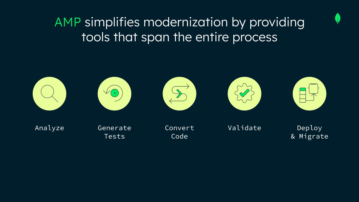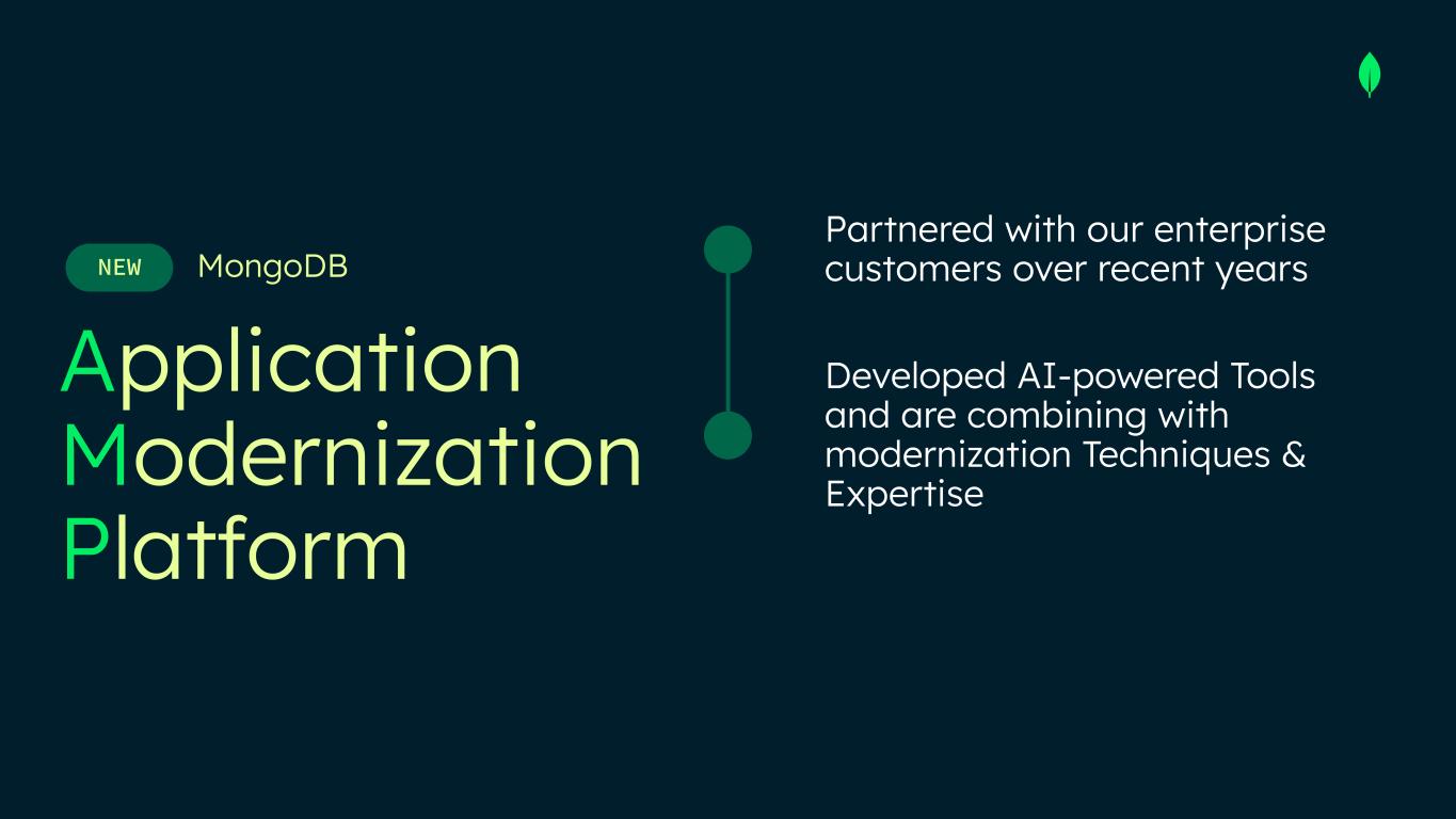 Application Modernization Platform MongoDBNEW Partnered with our enterprise customers over recent years Developed AI-powered Tools and are combining with modernization Techniques & Expertise