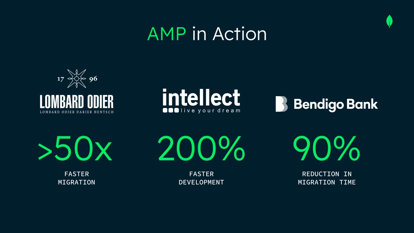 AMP in Action FASTER DEVELOPMENT 200% REDUCTION IN MIGRATION TIME 90% FASTER MIGRATION >50x