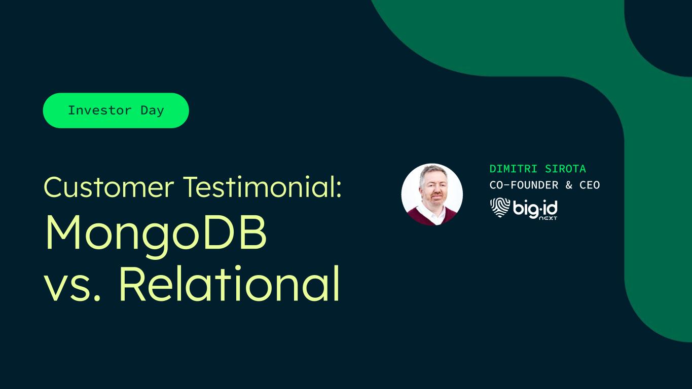 CO-FOUNDER & CEO Investor Day Customer Testimonial: MongoDB vs. Relational DIMITRI SIROTA