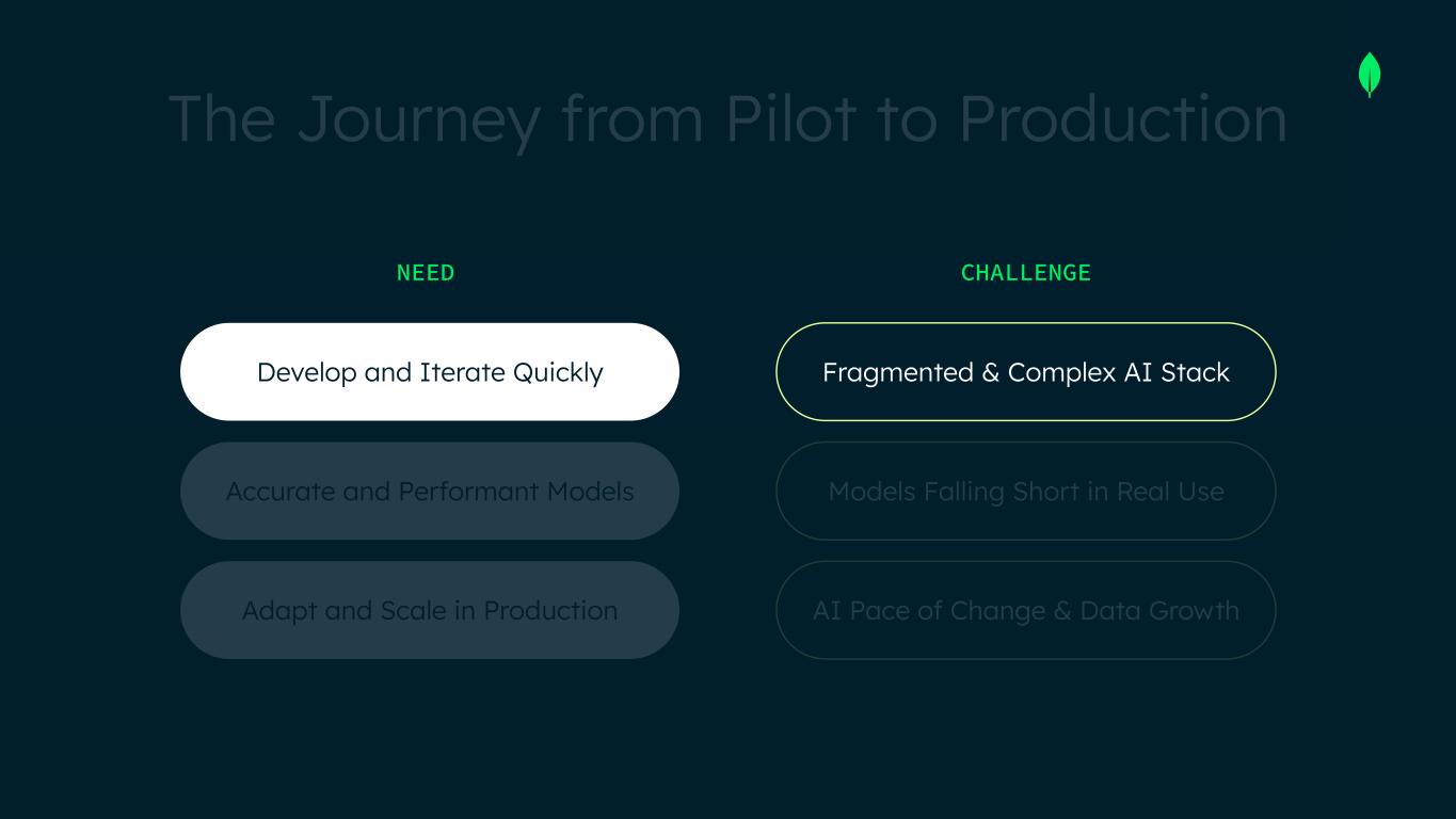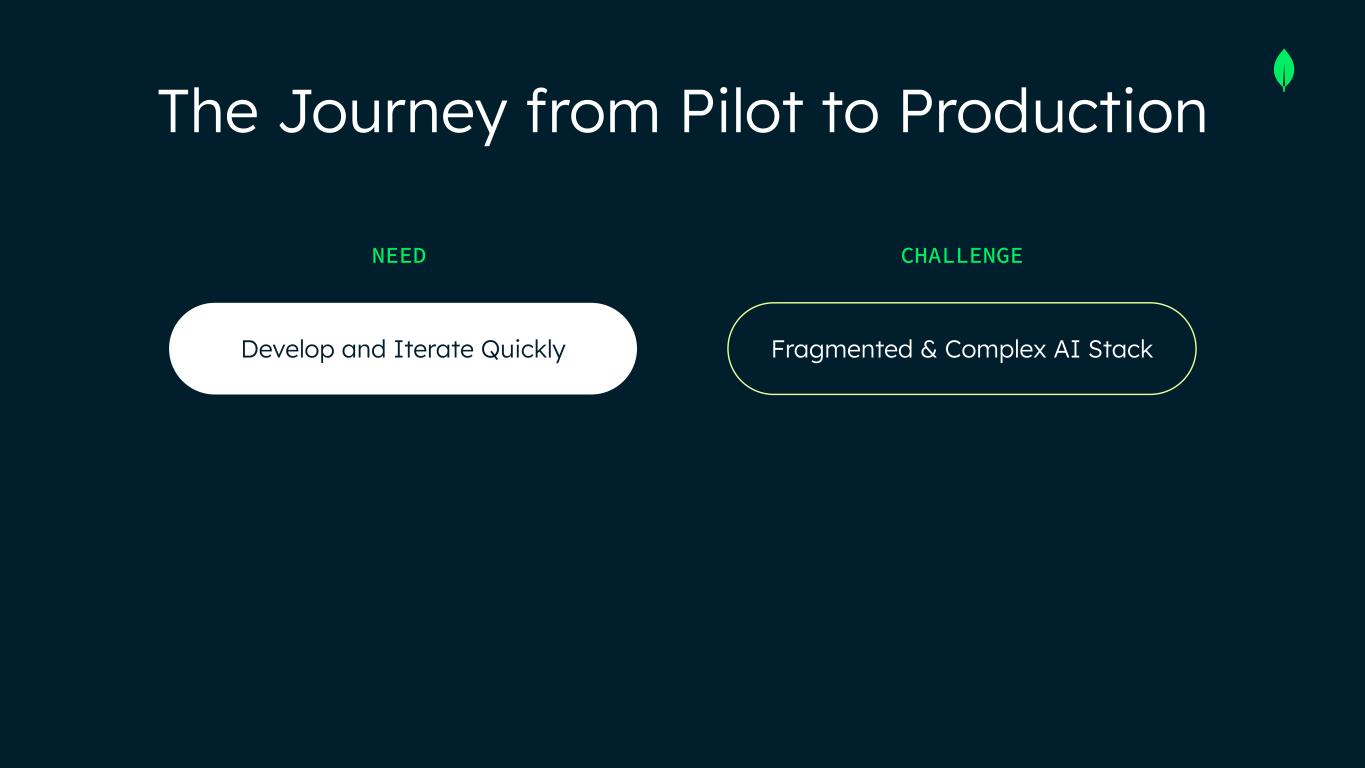 The Journey from Pilot to Production NEED Develop and Iterate Quickly CHALLENGE Fragmented & Complex AI Stack