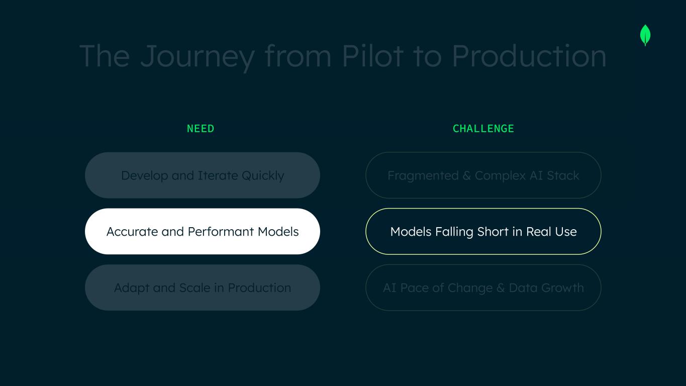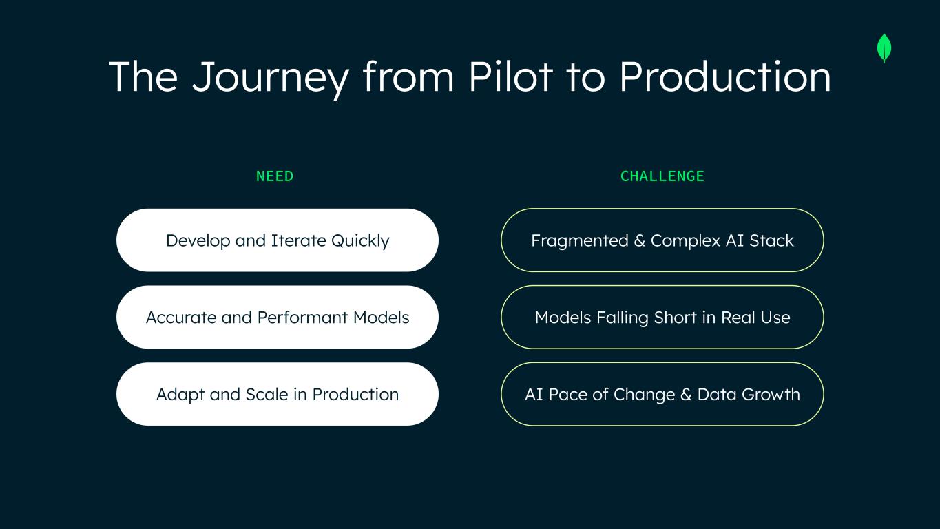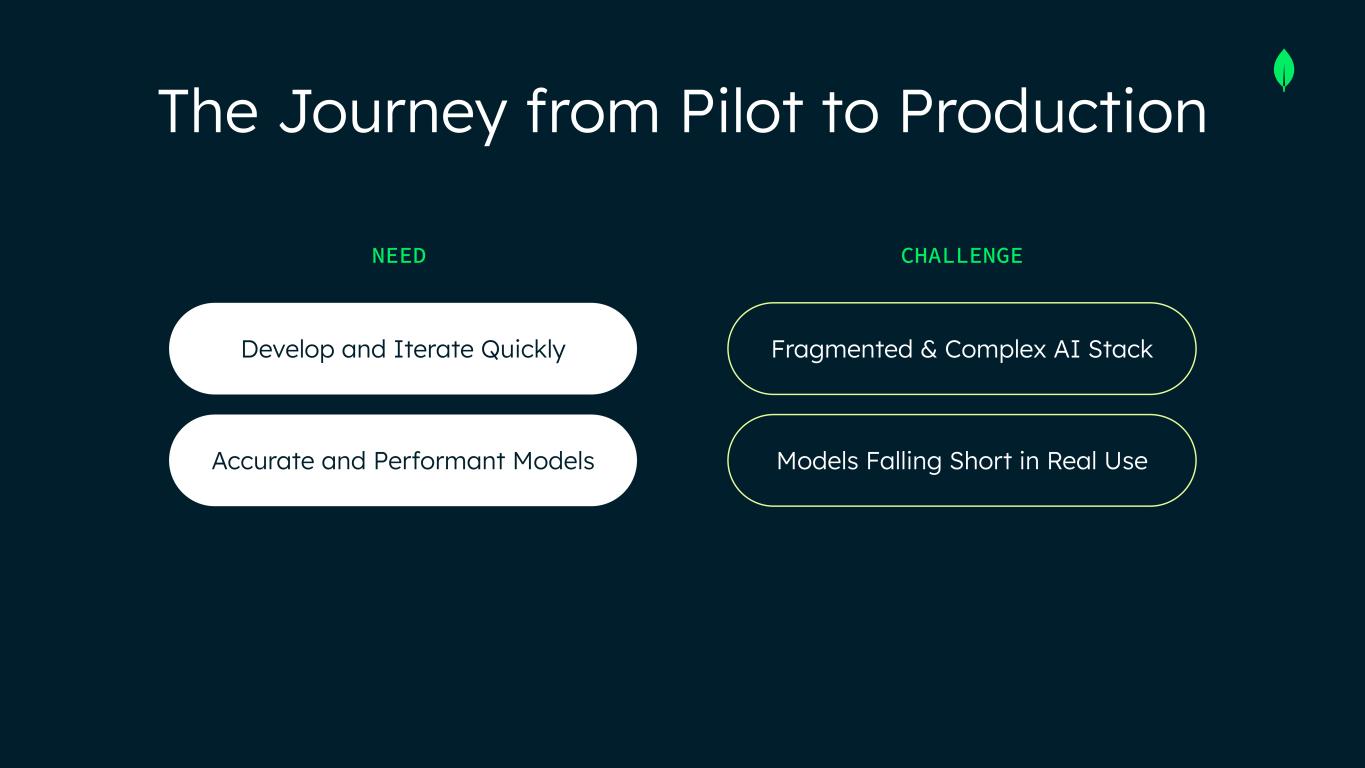 The Journey from Pilot to Production NEED Develop and Iterate Quickly Accurate and Performant Models CHALLENGE Fragmented & Complex AI Stack Models Falling Short in Real Use