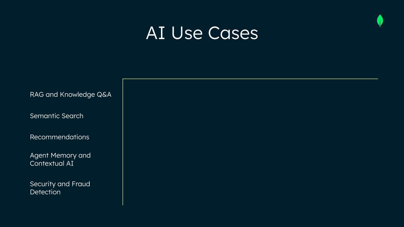 AI Use Cases RAG and Knowledge Q&A Semantic Search Recommendations Agent Memory and Contextual AI Security and Fraud Detection