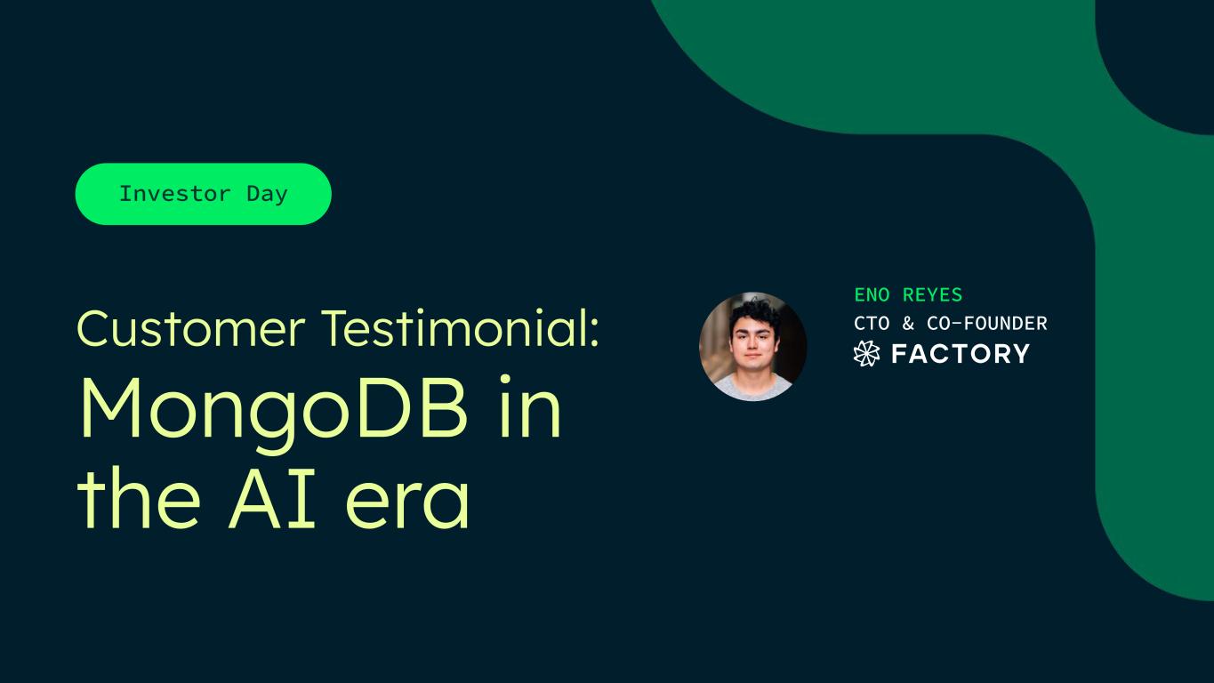 Investor Day Customer Testimonial: MongoDB in the AI era ENO REYES CTO & CO-FOUNDER