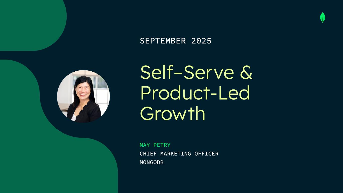Self–Serve & Product-Led Growth MAY PETRY CHIEF MARKETING OFFICER MONGODB SEPTEMBER 2025