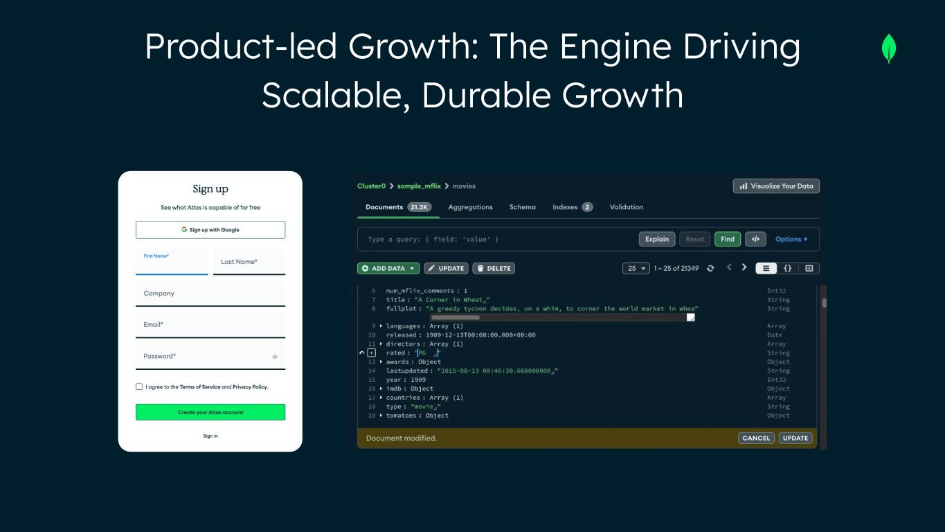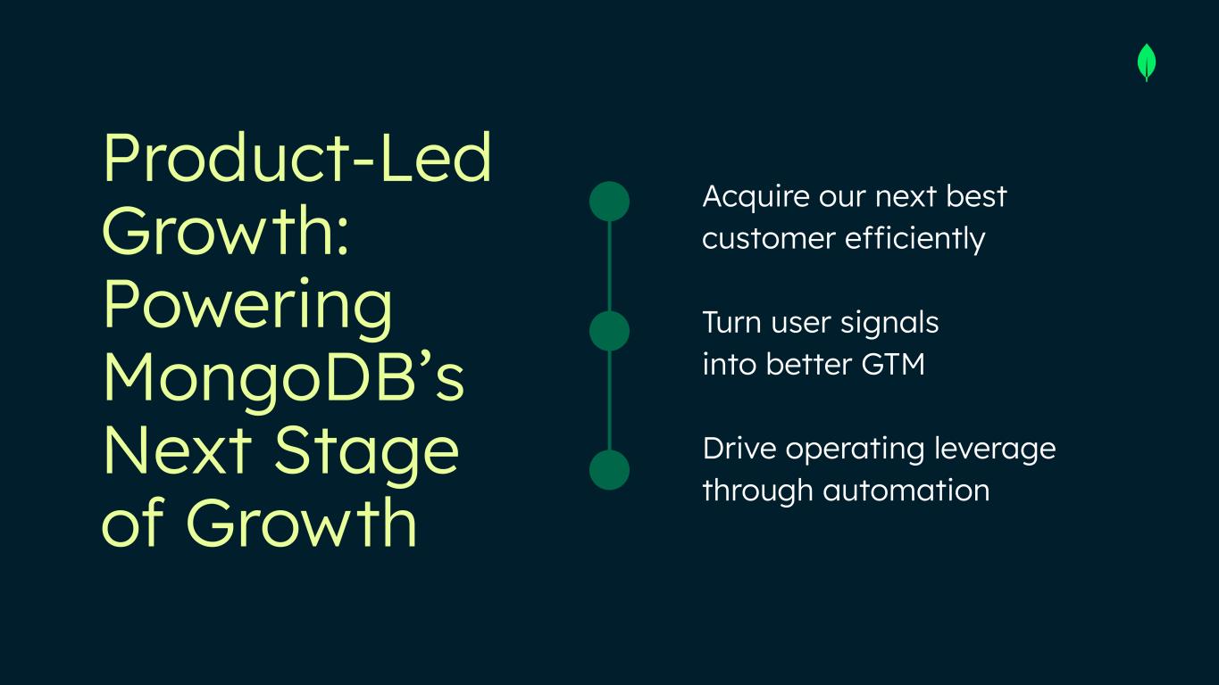 Acquire our next best customer efficiently Turn user signals into better GTM Drive operating leverage through automation Product-Led Growth: Powering MongoDB’s Next Stage of Growth