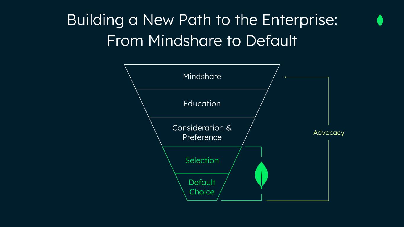 Building a New Path to the Enterprise: From Mindshare to Default Mindshare Education Consideration & Preference Selection Default Choice Advocacy