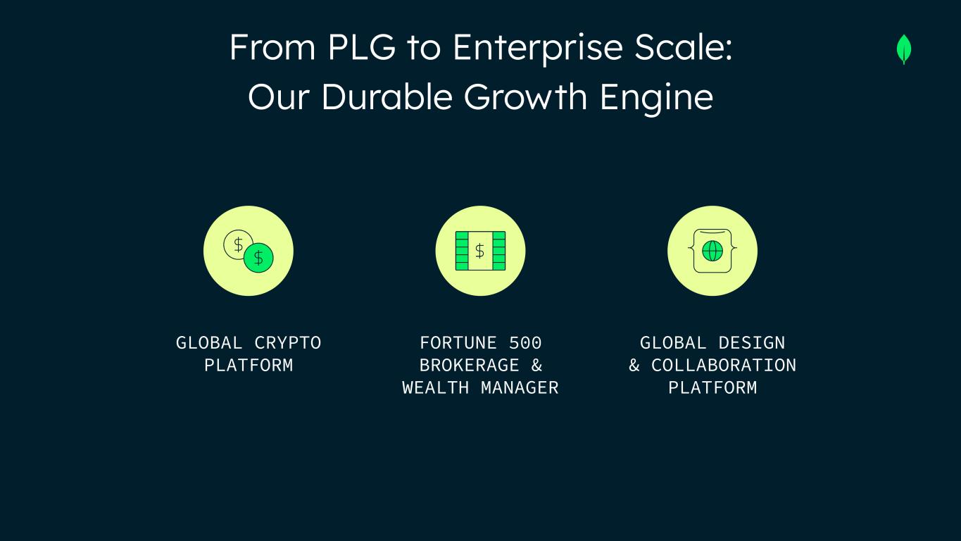 From PLG to Enterprise Scale: Our Durable Growth Engine GLOBAL CRYPTO PLATFORM FORTUNE 500 BROKERAGE & WEALTH MANAGER GLOBAL DESIGN & COLLABORATION PLATFORM