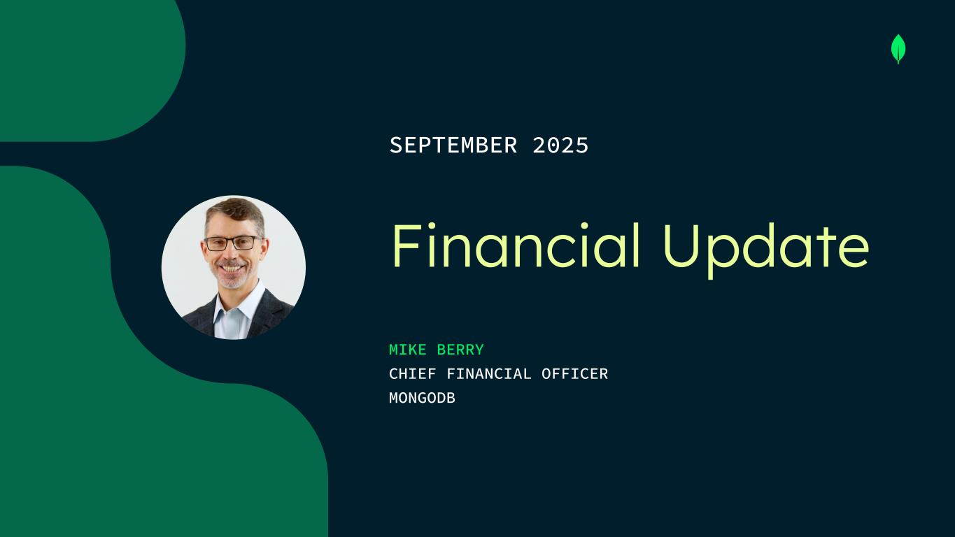 SEPTEMBER 2025 Financial Update MIKE BERRY CHIEF FINANCIAL OFFICER MONGODB