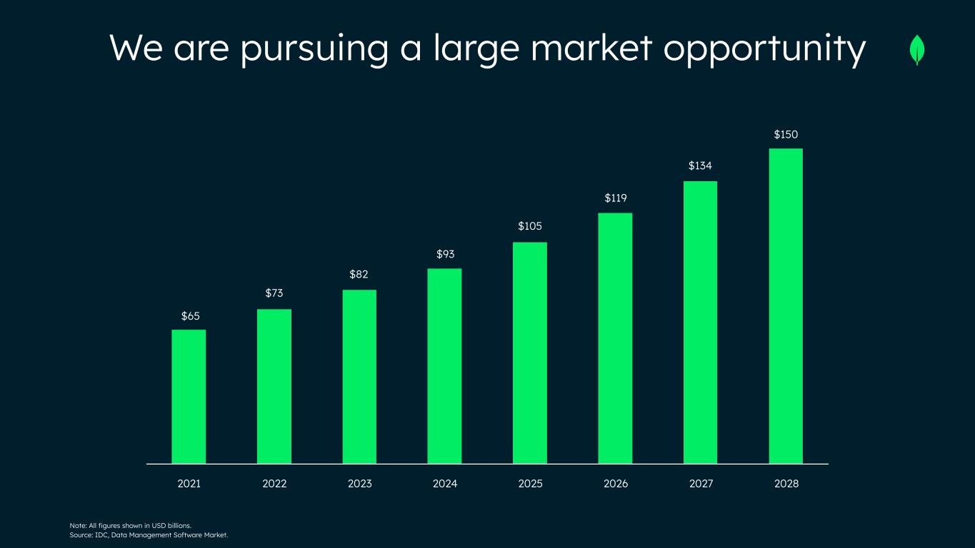 2021 2022 2023 2024 2025 2026 2027 2028 $150 $134 $119 $105 $93 $82 $73 $65 Note: All figures shown in USD billions. Source: IDC, Data Management Software Market. We are pursuing a large market opportunity