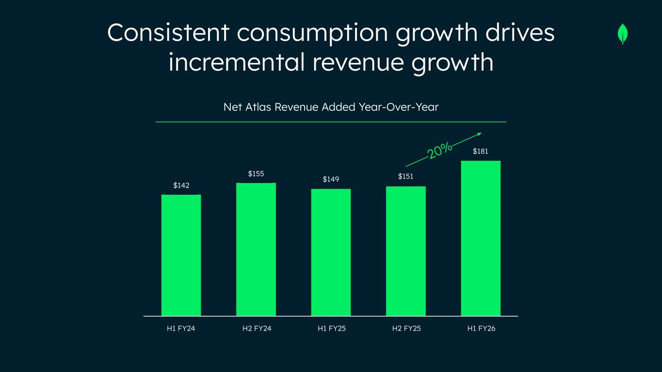 Net Atlas Revenue Added Year-Over-Year H1 FY24 H2 FY24 H1 FY25 H2 FY25 H1 FY26 $142 $155 $149 $151 $181 Consistent consumption growth drives incremental revenue growth 20%