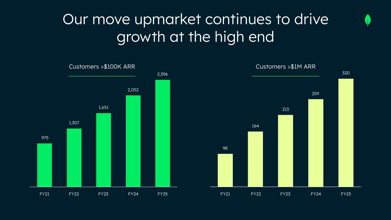 Customers >$100K ARR Customers >$1M ARR 975 1,307 1,651 2,052 2,396 98 164 213 259 320 FY21 FY22 FY23 FY24 FY25 FY21 FY22 FY23 FY24 FY25 Our move upmarket continues to drive growth at the high end