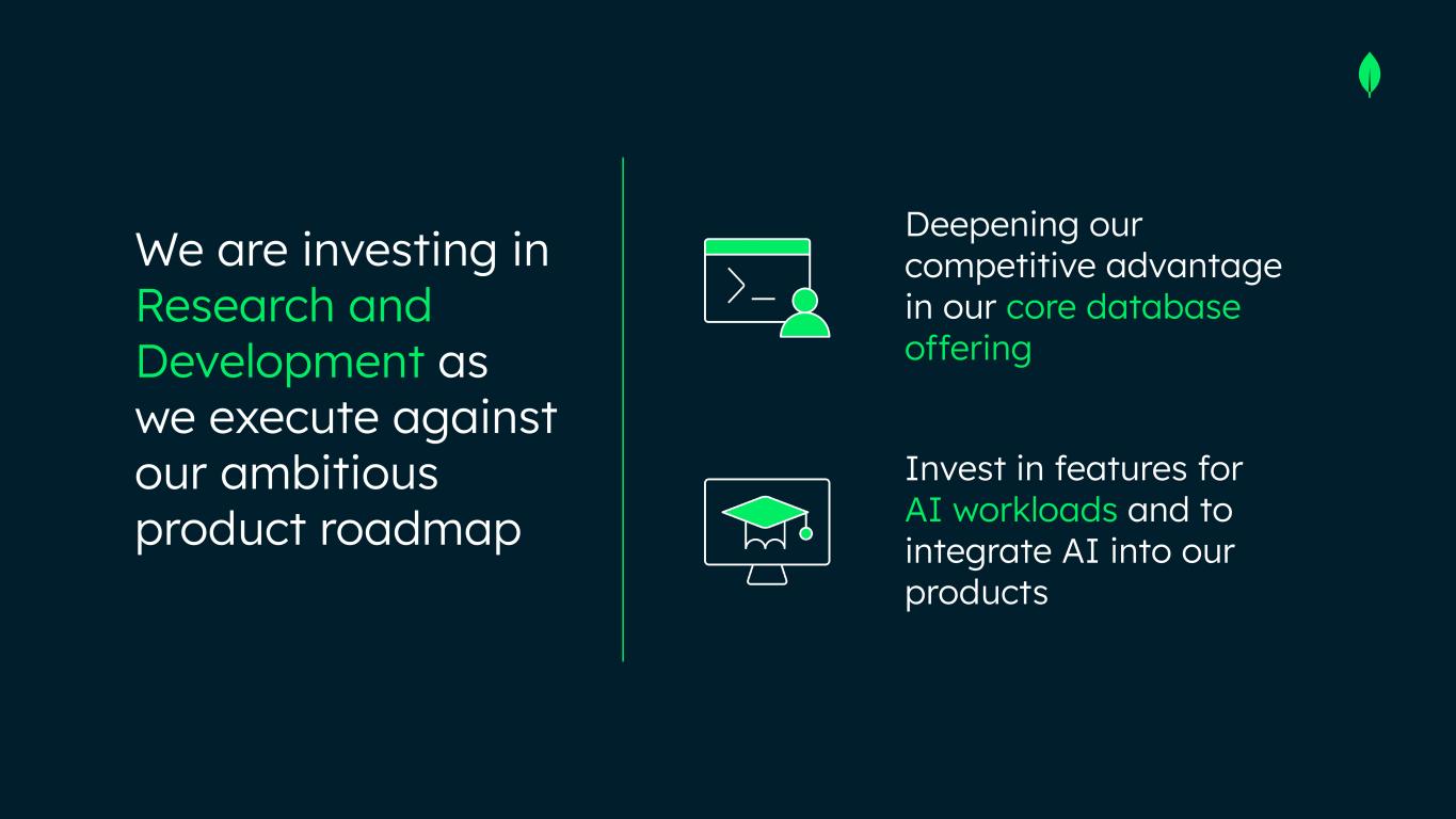 Invest in features for AI workloads and to integrate AI into our products Deepening our competitive advantage in our core database offering We are investing in Research and Development as we execute against our ambitious product roadmap