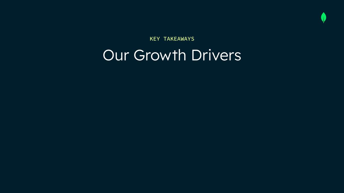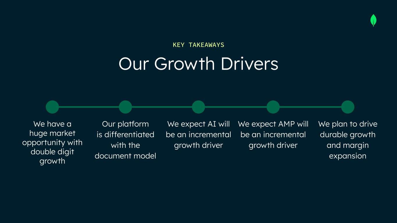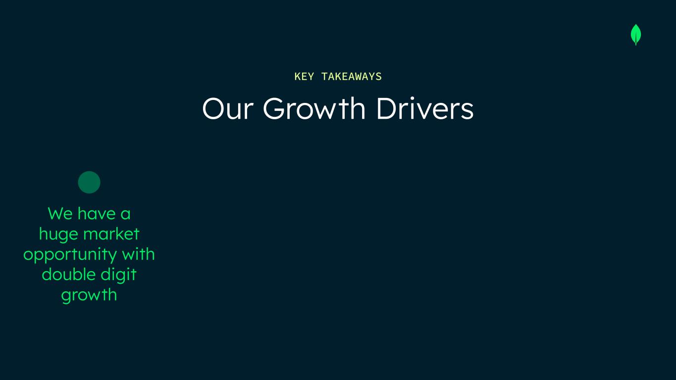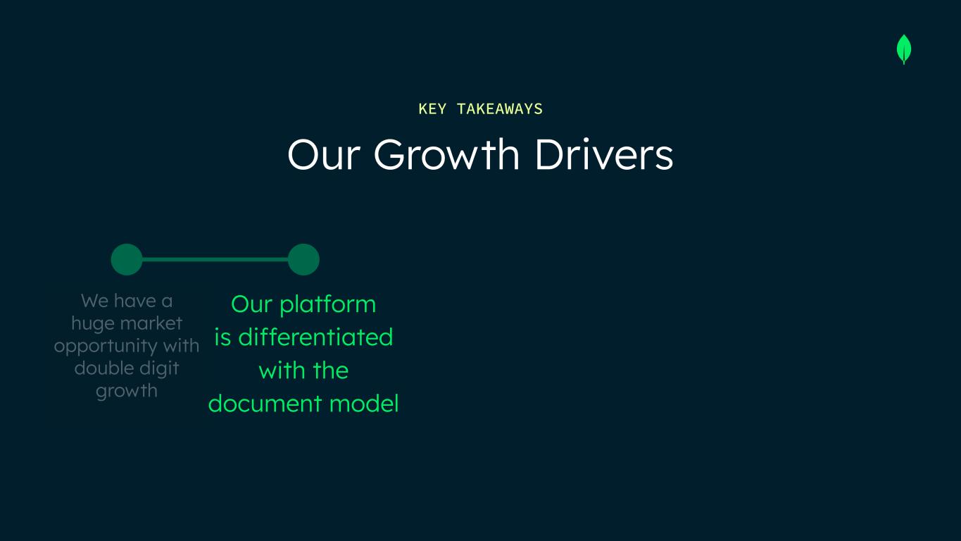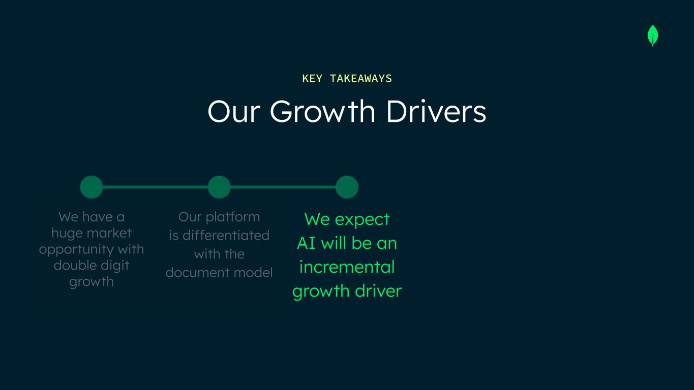 We have a huge market opportunity with double digit growth Our platform is differentiated with the document model Our Growth Drivers KEY TAKEAWAYS We expect AI will be an incremental growth driver