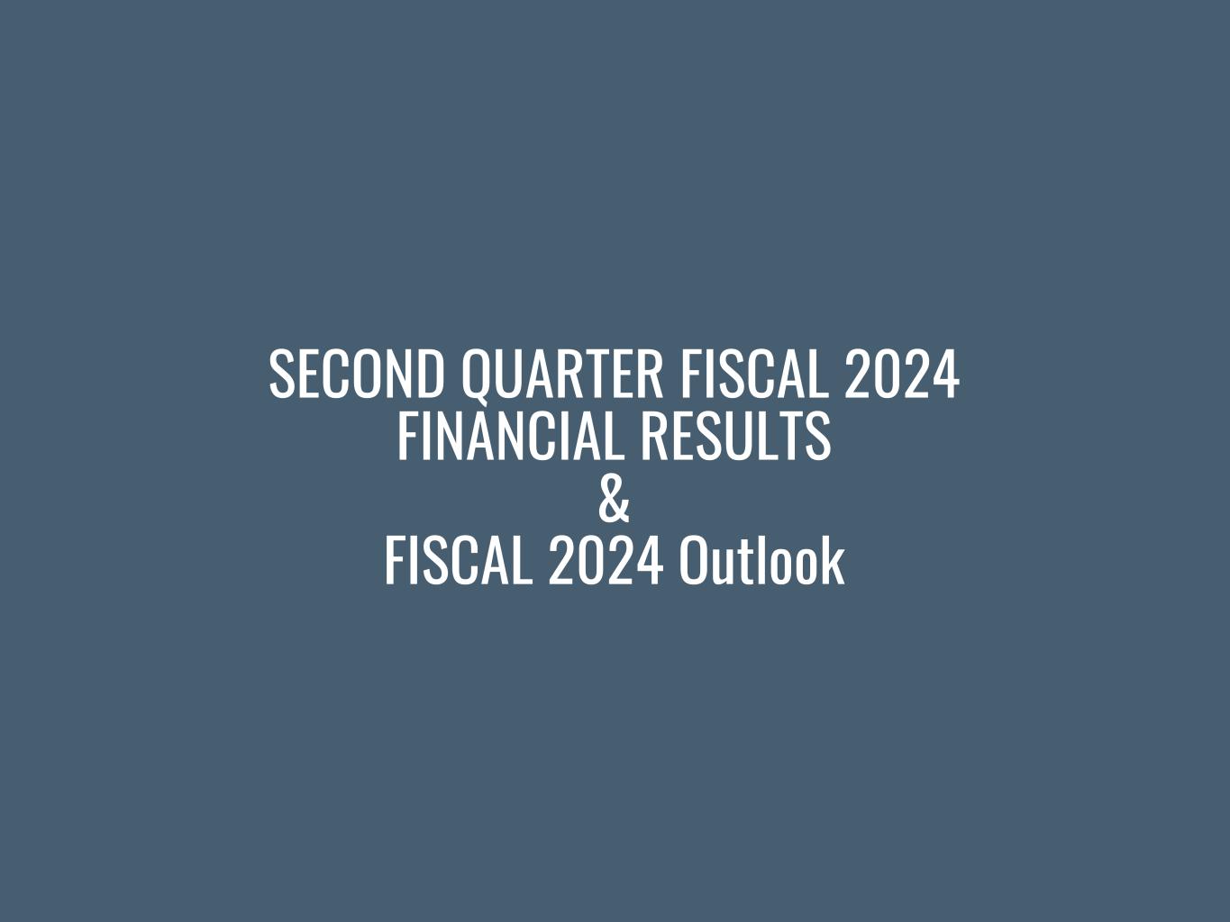 SECOND QUARTER FISCAL 2024 FINANCIAL RESULTS & FISCAL 2024 Outlook