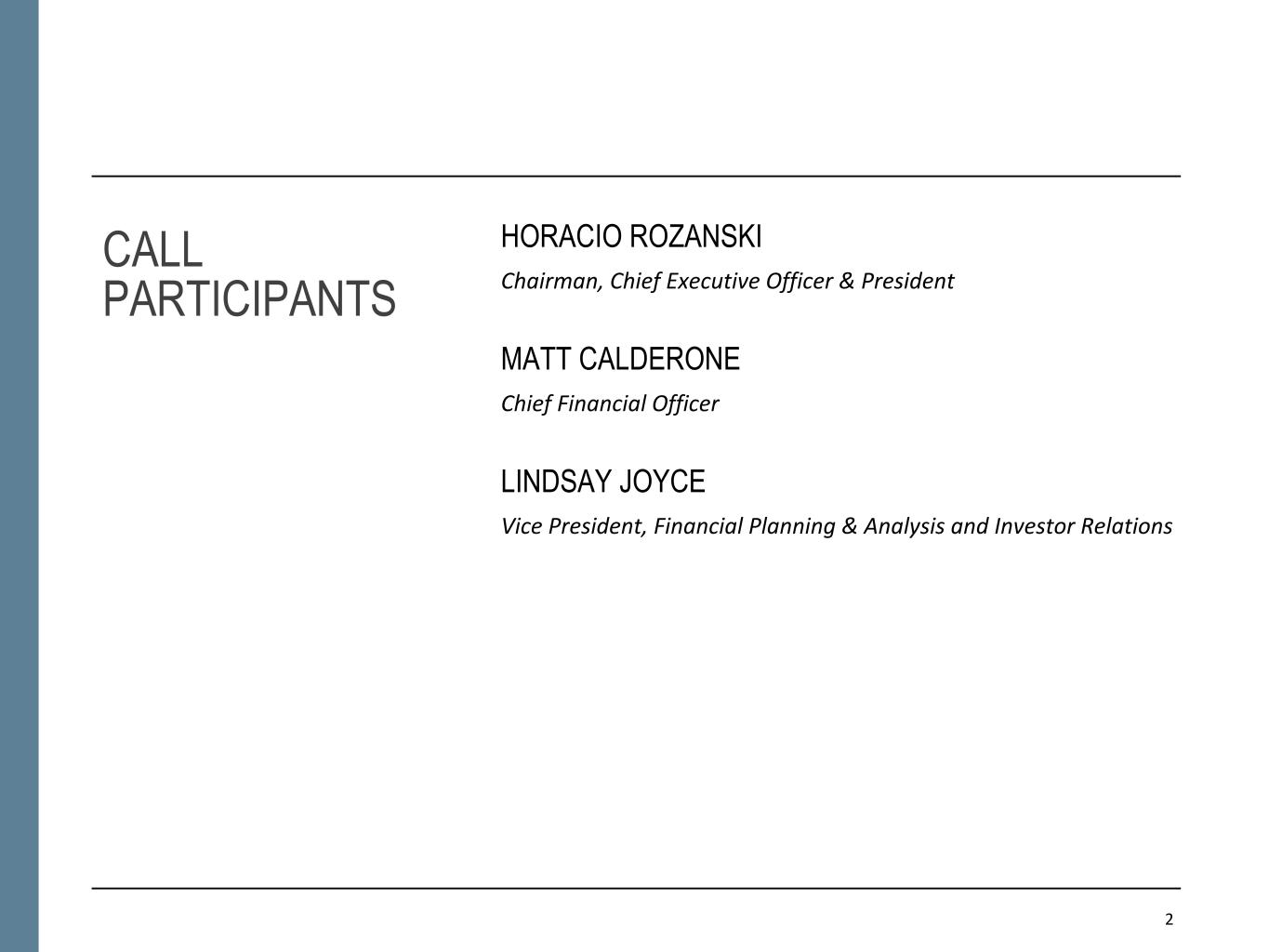 2 HORACIO ROZANSKI Chairman, Chief Executive Officer & President MATT CALDERONE Chief Financial Officer LINDSAY JOYCE Vice President, Financial Planning & Analysis and Investor Relations CALL PARTICIPANTS