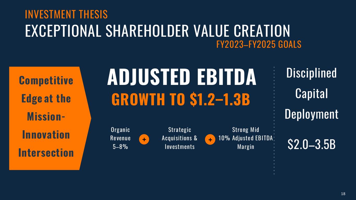 18 INVESTMENT THESIS EXCEPTIONAL SHAREHOLDER VALUE CREATION FY2023–FY2025 GOALS Competitive Edge at the Mission- Innovation Intersection ADJUSTED EBITDA GROWTH TO $1.2–1.3B Disciplined Capital Deployment $2.0–3.5B Organic Revenue 5–8% Strategic Acquisitions & Investments Strong Mid 10% Adjusted EBITDA Margin ++
