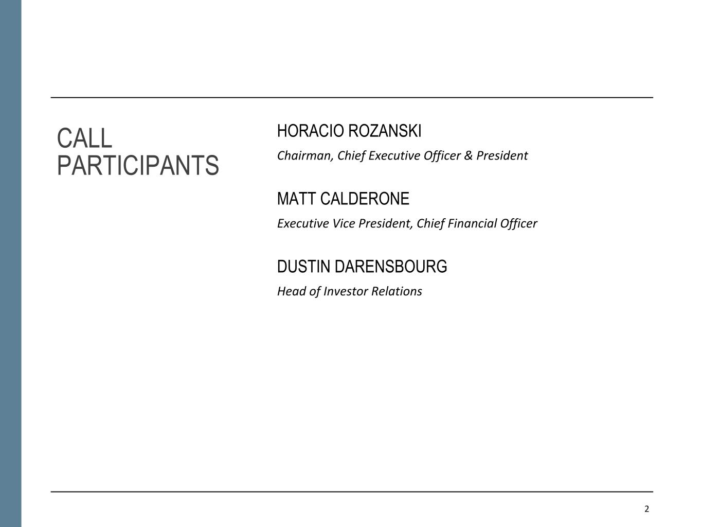 2 HORACIO ROZANSKI Chairman, Chief Executive Officer & President MATT CALDERONE Executive Vice President, Chief Financial Officer DUSTIN DARENSBOURG Head of Investor Relations CALL PARTICIPANTS
