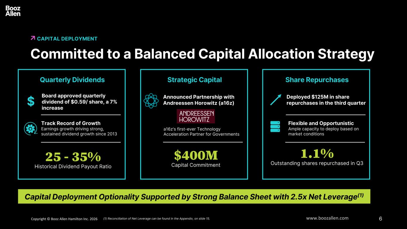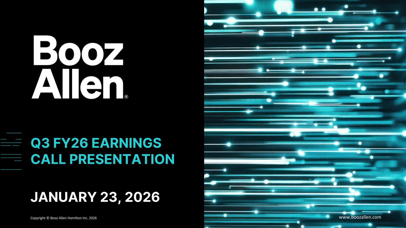 Copyright © Booz Allen Hamilton Inc. 2025 www.boozallen.com OK TO WORK DESIGN Booz Allen Hamilton Internal ri t ll ilt I . 6 Q3 FY26 EARNINGS CALL PRESENTATION JANUARY 23, 2026