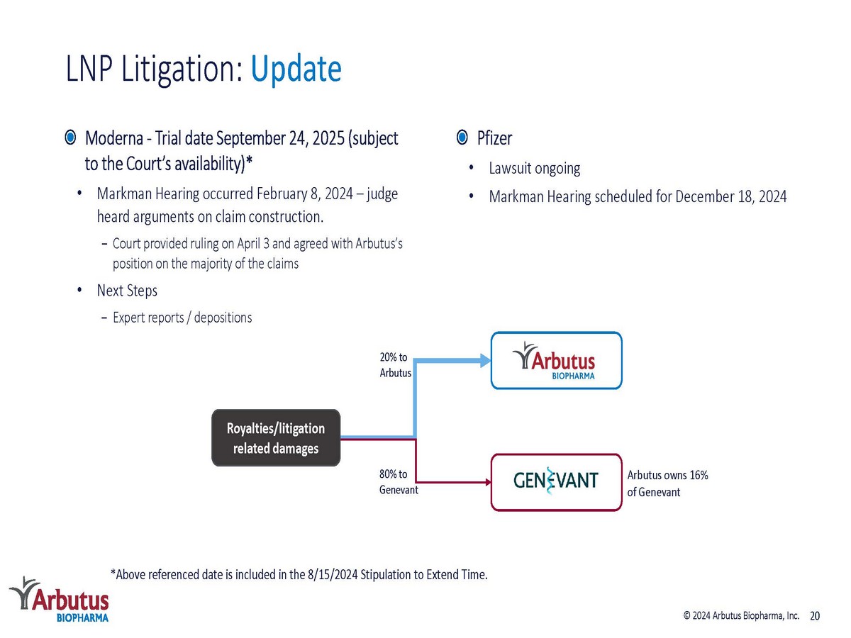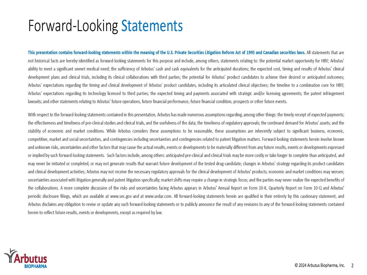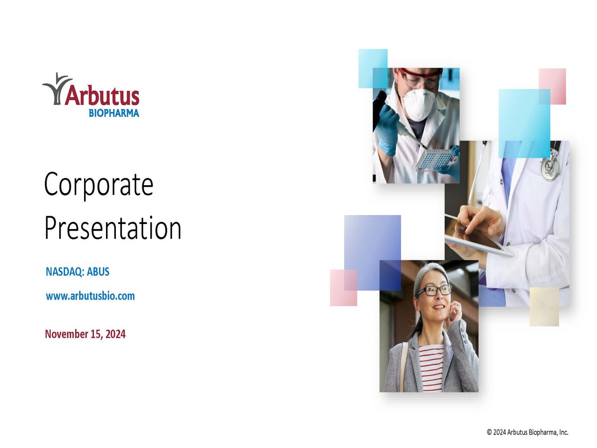 NASDAQ: ABUS www.arbutusbio.com November 15, 2024 Corporate Presentation © 2024 Arbutus Biopharma, Inc.