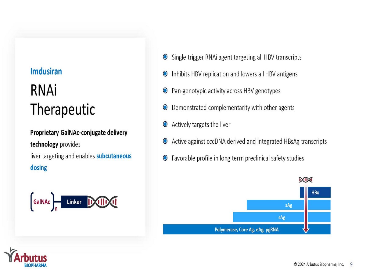 8 © 2024 Arbutus Biopharma, Inc. Imdusiran RNAi Therapeutic