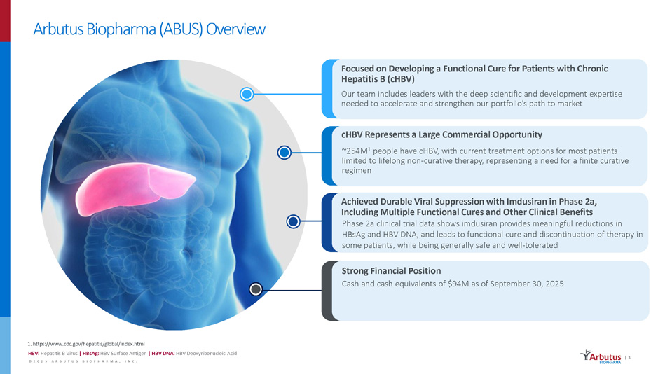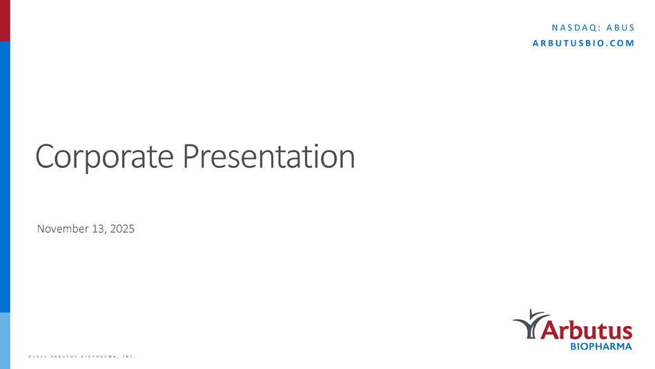 NASDAQ: ABUS ARBUTUSBIO.COM ©2025 ARBUTUS BIOPHARMA, INC . Corporate Presentation November 13, 2025
