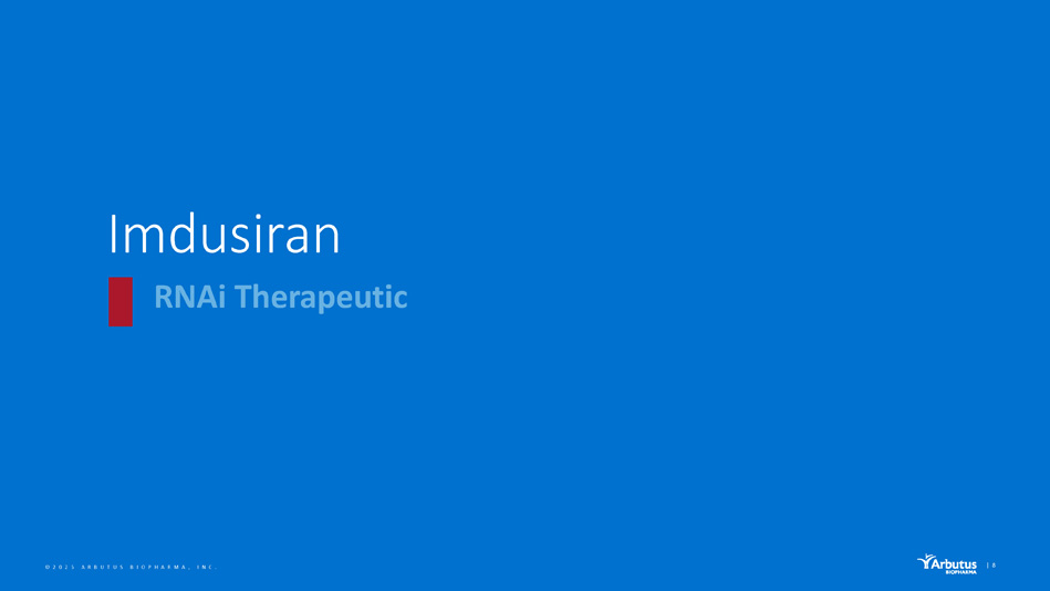 ©2025 ARBUTUS BIOPHARMA, INC. Imdusiran RNAi Therapeutic | 8