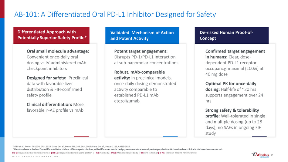 ©2025 ARBUTUS BIOPHARMA, INC. AB - 101 Oral PD - L1 Checkpoint Inhibitor | 26