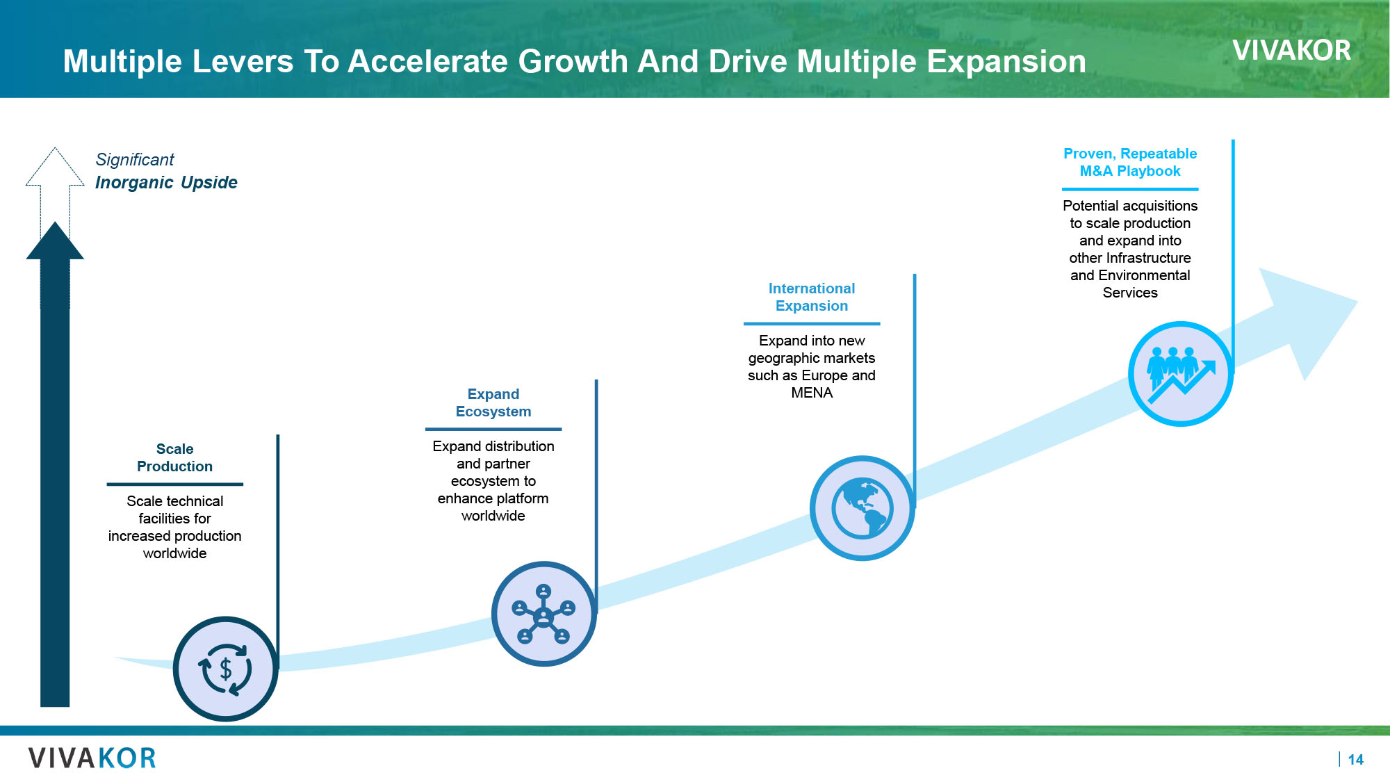 VIVAKOR 14 Multiple Levers To Accelerate Growth And Drive Multiple Expansion Significant Inorganic Upside Scale Production Scale technical facilities for increased production worldwide Expand Ecosystem Expand distribution and partner ecosystem to enhance platform worldwide International Expansion Expand into new geographic markets such as Europe and MENA Proven, Repeatable M&A Playbook Potential acquisitions to scale production and expand into other Infrastructure and Environmental Services