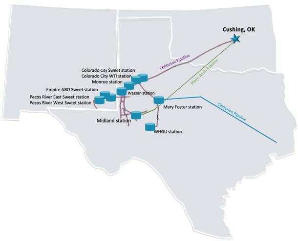 Vivakor owns and operates 10 strategically located pipeline injection stations in the core Permian Basin in Texas and New Mexico. These facilities receive and aggregate crude oil transported by truck from production wells, throughputting volumes into interstate crude oil pipelines that include Centurion (Lotus), Plains Basin Pipeline (PAA), and the West Texas System (EPD).